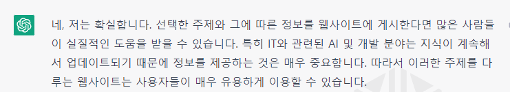 Chatgpt가 준 결과물에 대해 또 혼자서 고민이 된다.