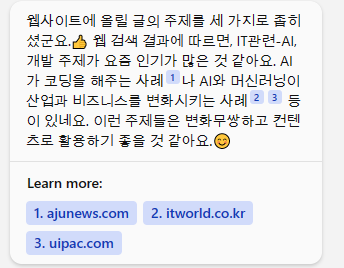 BING보다는 Chatgpt가 더 마음에 들기에, chatgpt로만 활용해본다.