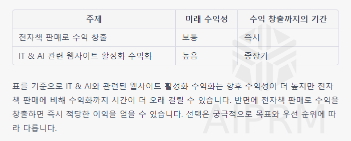 Q2. 내가 제일 먼저 하고 싶은게 무엇인지 질문 (전자책 판매 & IT & AI Tool활용)