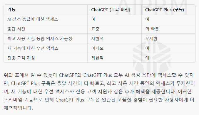 < ChatGPT 와 ChatGPT Plus 비교 >