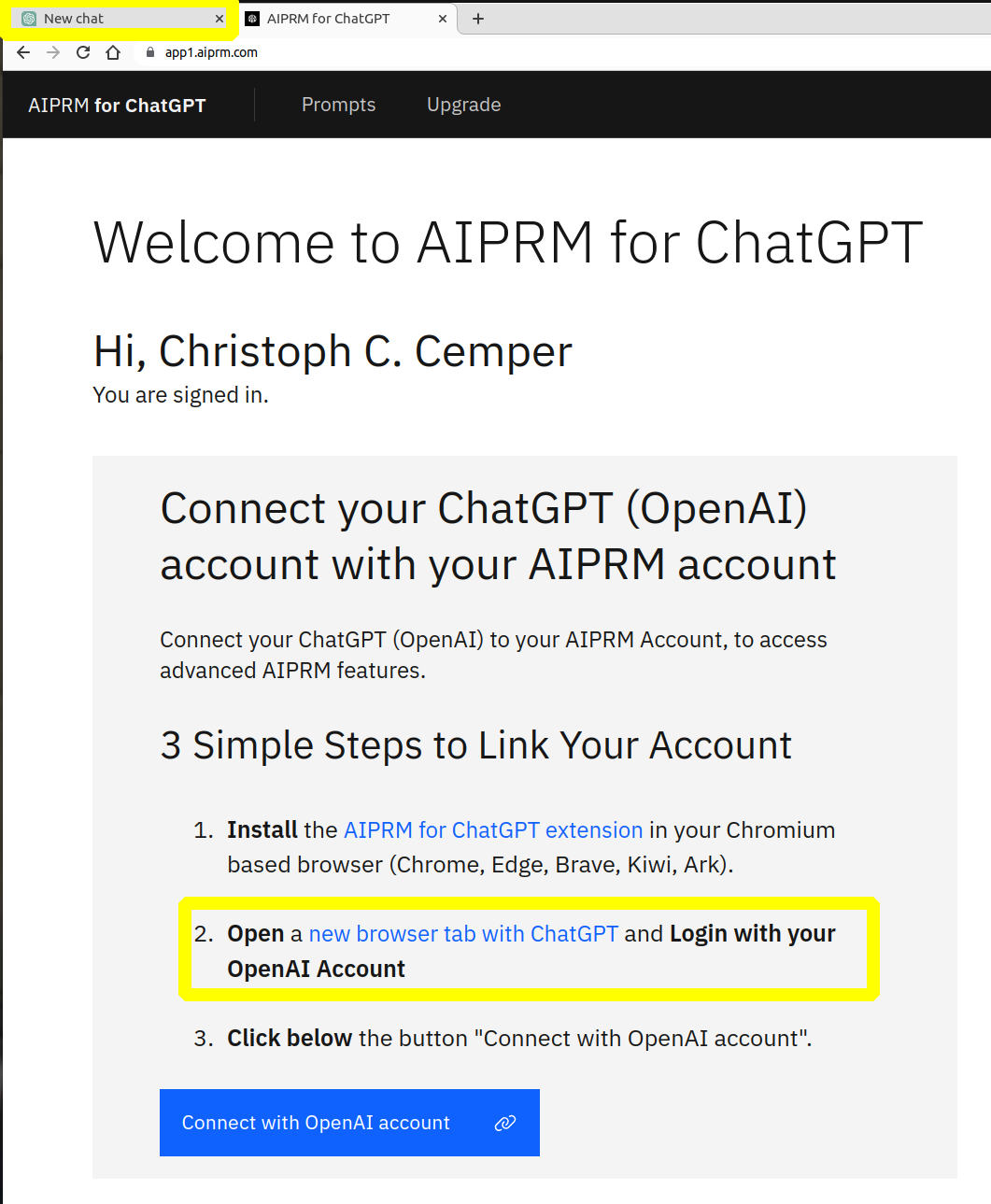 This will only work if you have the new extension version 1.1.3.10 and up How to connect your OpenAI to AIPRM account Are you ready to unleash the full potential of your AIPRM account with OpenAI integration? We’ve got you covered with this simple step-b