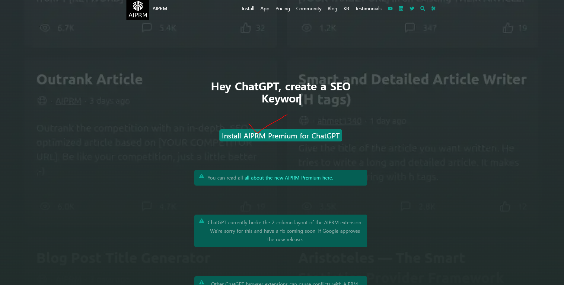 9. 창이 하나 뜰겁니다.  "Install AIPRM Premium for ChatGPT"를 클릭하세요.