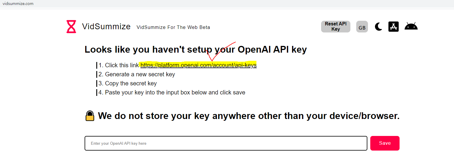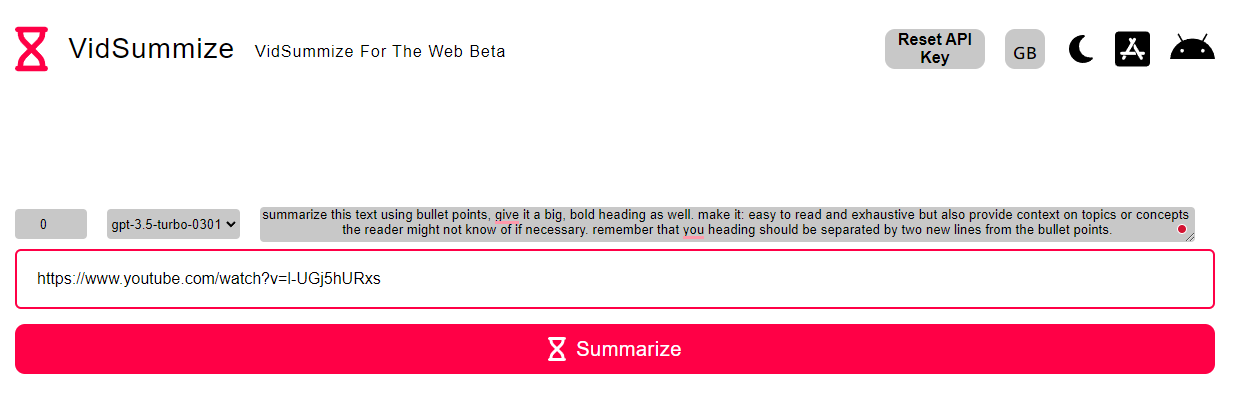 다시 VidSummize 웹사이트 로 가서 붙여넣기를 해봅시다.