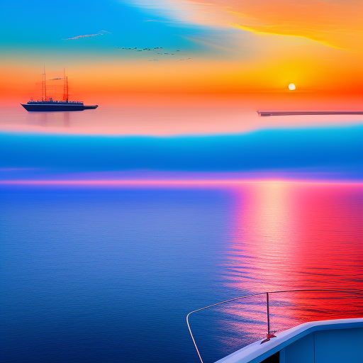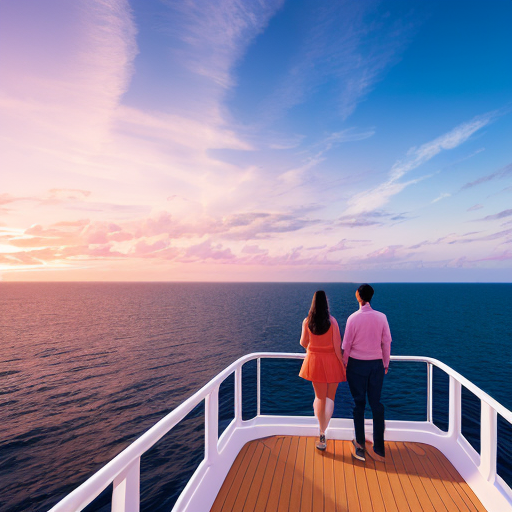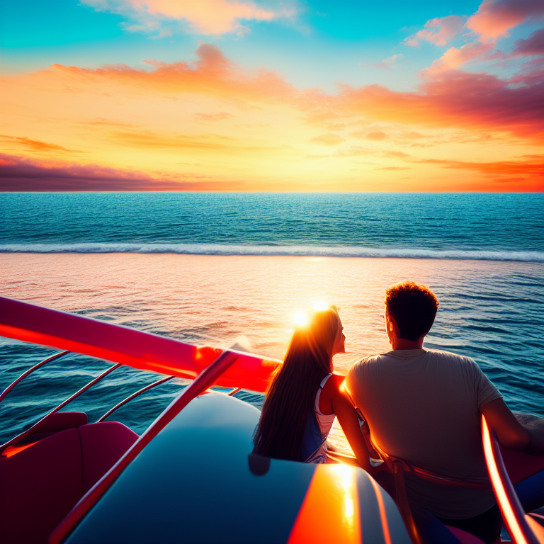 /imagine prompt: You and your husband are on a boat, sailing towards the horizon.